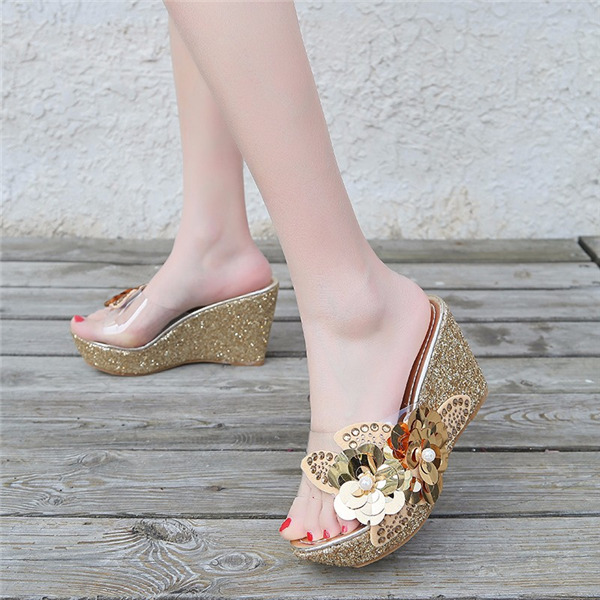 ウェッジソールサンダル レディース 厚底 花柄 サンダル ビーチサンダル 痛くない シースルー ぺたんこ スリッパ 夏 海 旅行 歩きやすい 美脚