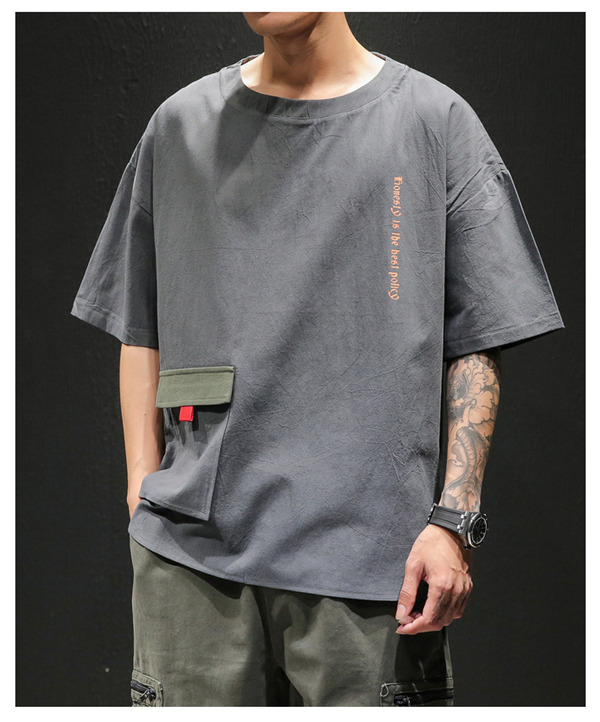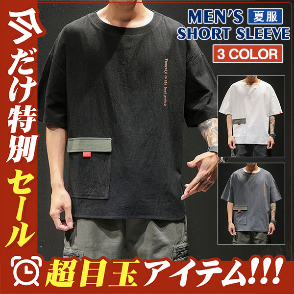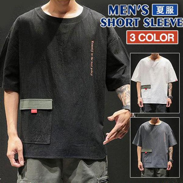Tシャツ メンズ 半袖 レイヤード風 重ね着 ゆったり 無地 カットソー カジュアル 新作 プルオーバー トップス 春夏 おしゃれ 薄手 お兄系