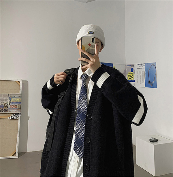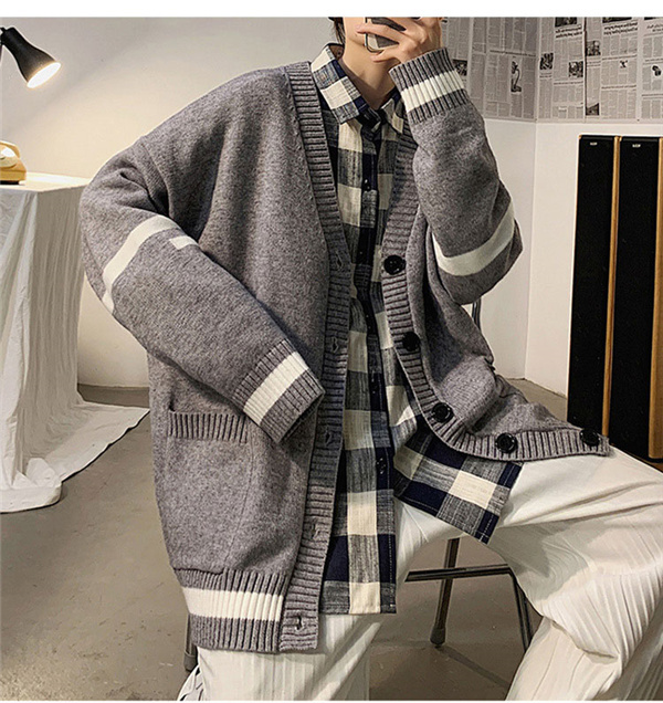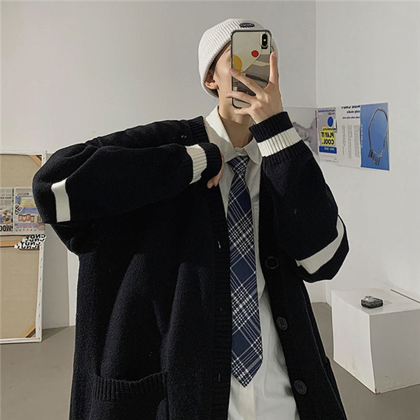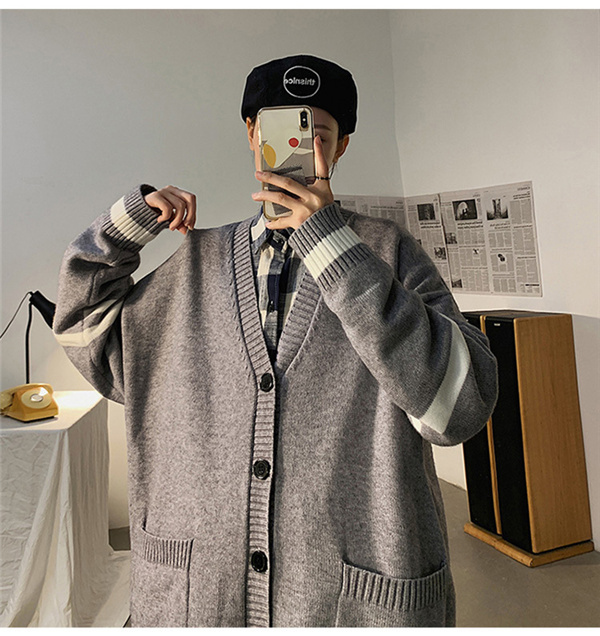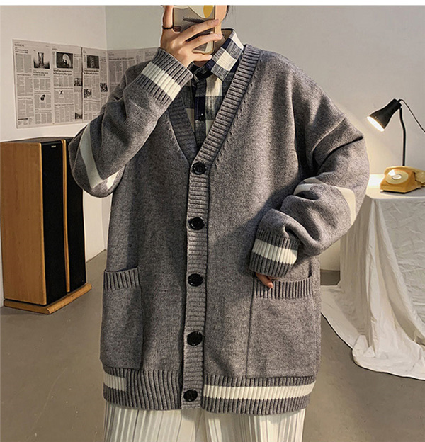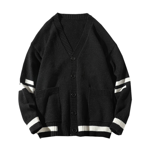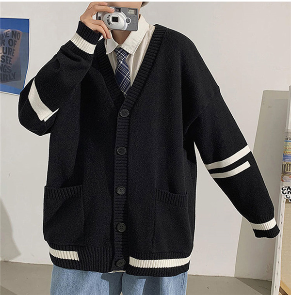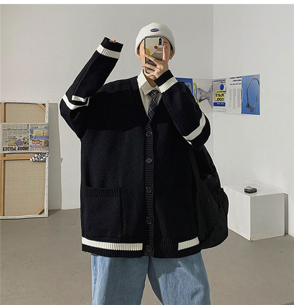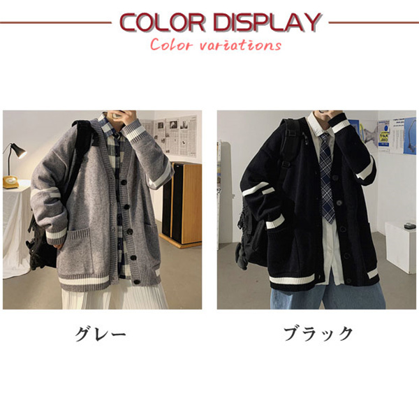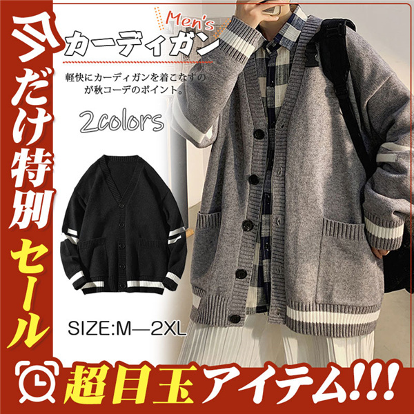 カーディガン メンズ ニット セーター ボーダー Vネック 春秋物 おしゃれ 学生 ゆったり 通学 長袖 カジュアル リラックス 洗える スクール