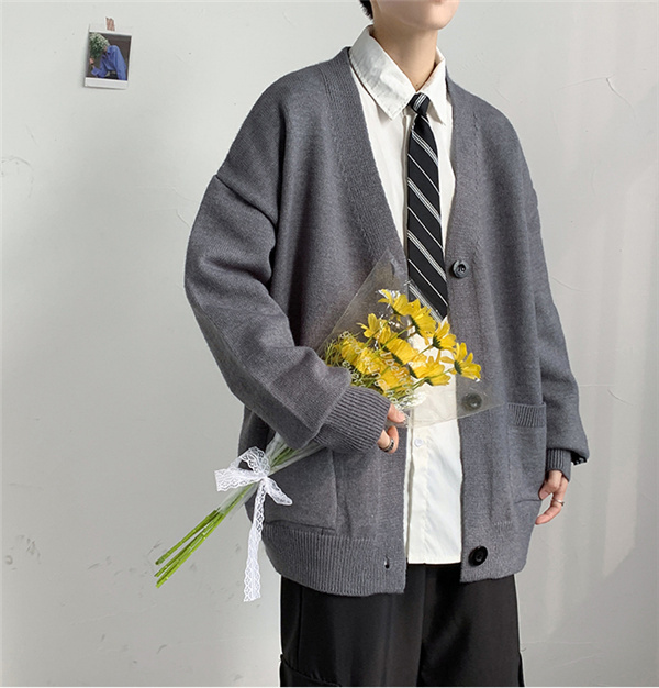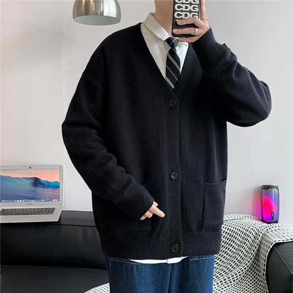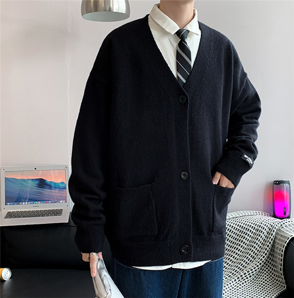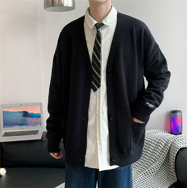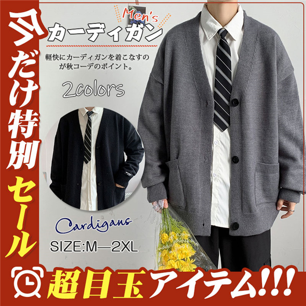 カーディガン メンズ ニット セーター Vネック 春秋物 おしゃれ 学生 ゆったり 通学 ビジネス 長袖 カジュアル リラックス 洗える スクール