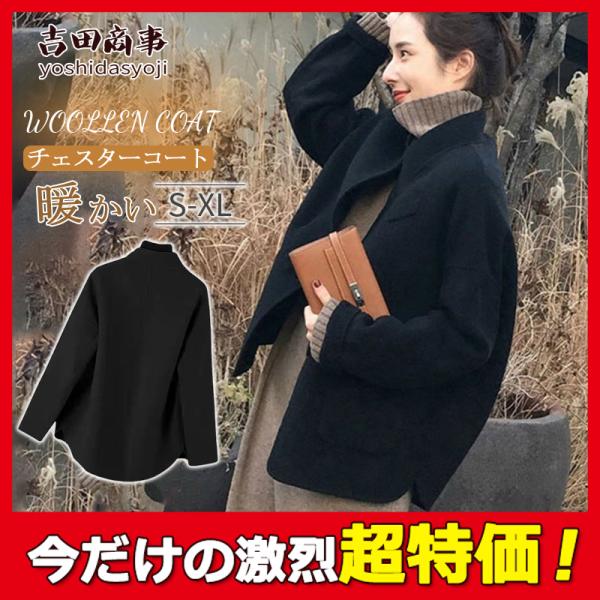 チェスターコート レディース コート 大人 秋冬 ショート丈 無地 ブラック アウター 上品 体型カバー 暖かい 厚手 おしゃれ コーデ カジュアル