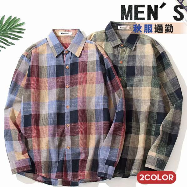 長袖シャツ メンズ カジュアルシャツ チェック柄 秋服 春服 長袖 トップス アウター ビジネス おしゃれ ボタンダウン 前開き 父の日 送料無料