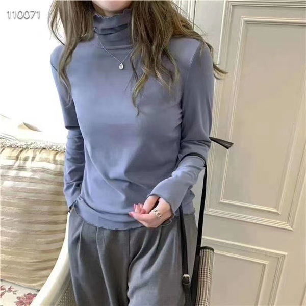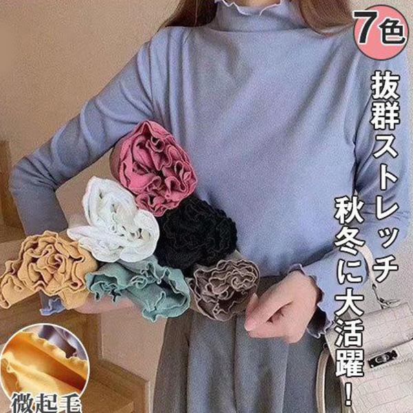 カットソー 微起毛 プチハイネック レディース トップス フリル カットソー ハイネック 長袖 インナー コーデ レイヤード 無地 カラバリー 重ね着