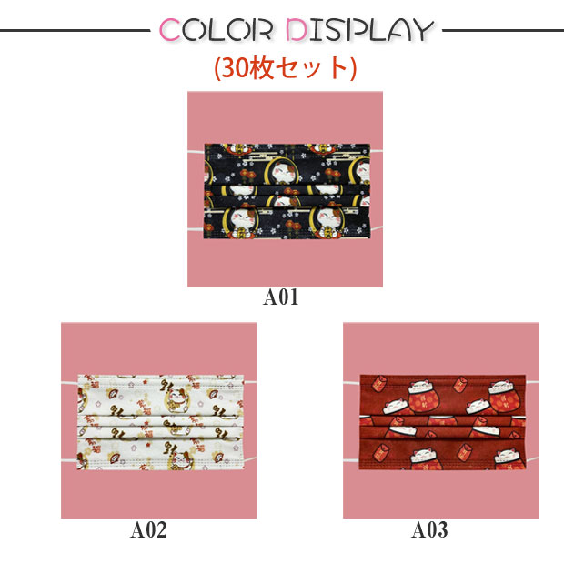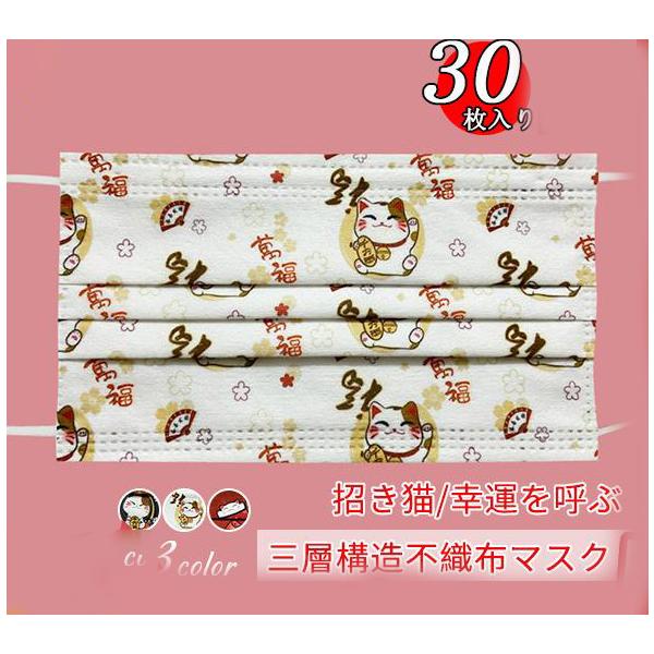 不織布マスク 招き猫 30枚セット 使い捨て 柄入り 柄物 猫 ファッション 大人 おしゃれ かわいい 幸運を呼ぶ 猫グッズ 猫雑貨