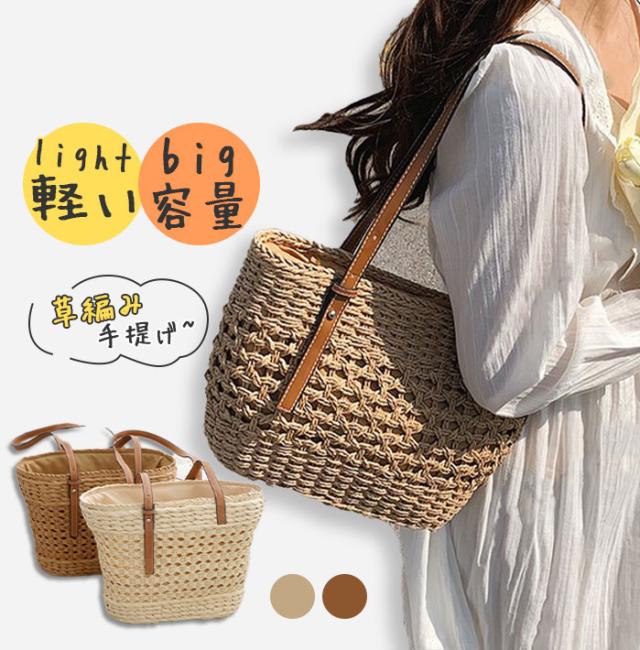 トートバッグ レディース 軽い カゴバッグ おしゃれ かごバッグ サマーバッグ 手提げ バッグ 女性 手編み ストローバッグ 大容量 軽量 送料無料