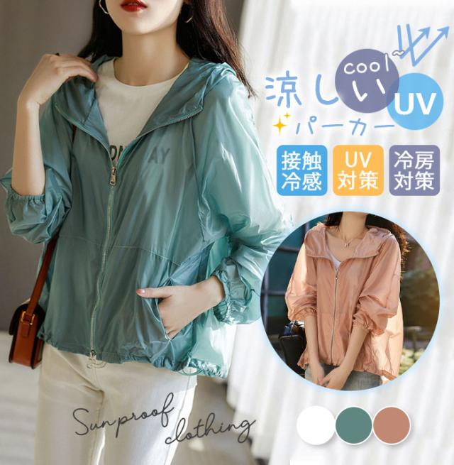 UVカットパーカー レディース 夏 薄手 涼しい UVカット フード付き 長袖 ライトアウター 紫外線カット 冷房対策 サマーパーカー 送料無料