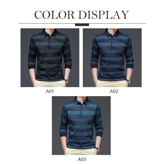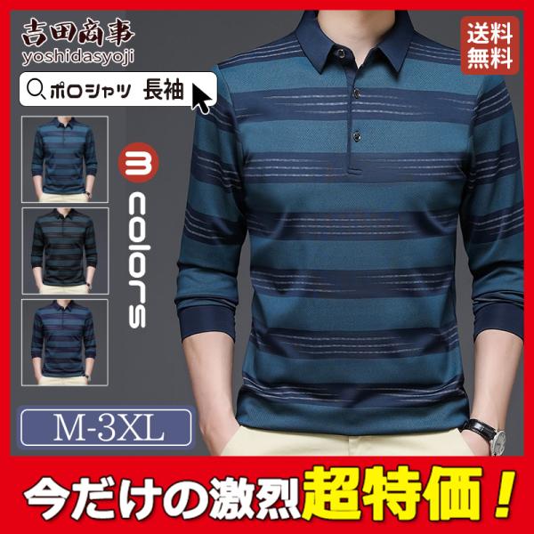 ポロシャツ メンズ トップス 長袖 ボーダー柄 ビジネス poloシャツ ストレッチ ゴルフウェア 通勤 春秋 カジュアル 紳士服 大きいサイズ