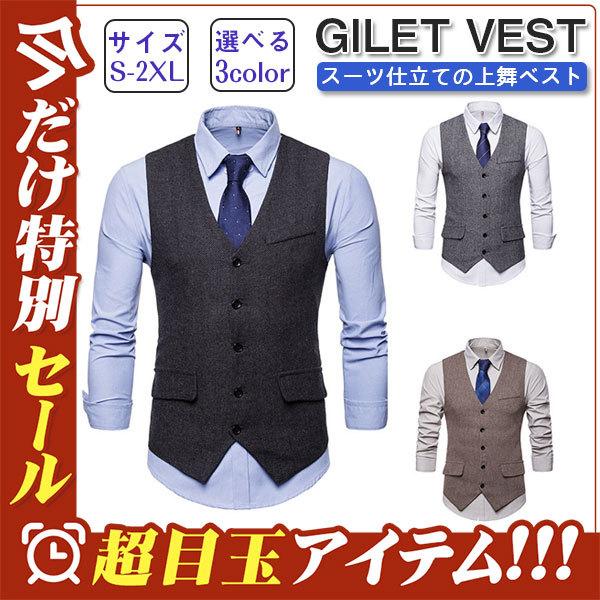 ベスト メンズ ジレー スーツベスト チョッキ フォーマルベスト 紳士服 ビジネス トップス 結婚式 パーティー スーツ スリムフィット カジュアル