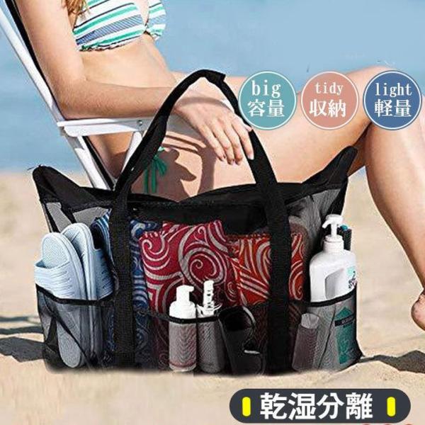 大容量 ビーチバッグ トートバッグ メッシュ サマーバッグ プールバッグ トート 軽量 旅行 カジュアル 軽い スポーツ シンプル アウトドア 海水浴