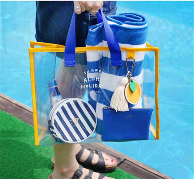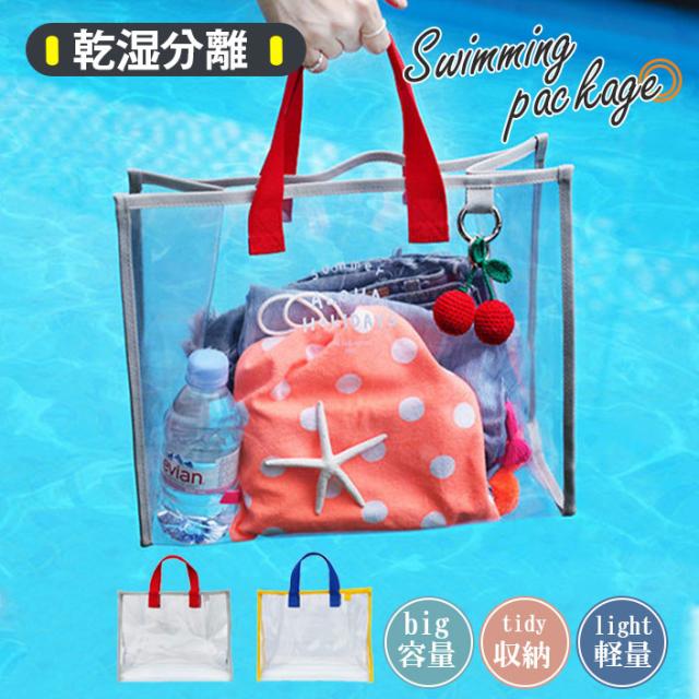 プールバッグ ビーチバッグ 水泳バック トートバッグ 大人 PVC 透明 子供 女の子 男の子 学生 大容量 収納 温泉浴 化粧品入れ 送料無料