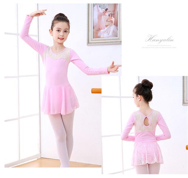 バレエレオタード キッズ 長袖 レオタード バレエ パープル ダンス衣装 バレエドレス子供 バレエ服 競技着 練習用 体操服 綿生地 発表会 レ