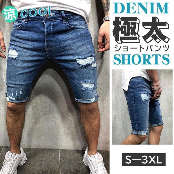 デニム ショートパンツ メンズ ハーフパンツ ダメージ 短パン かっこいい スリム アメカジ ジーンズ 夏 ストリート カジュアル 大きいサイズ