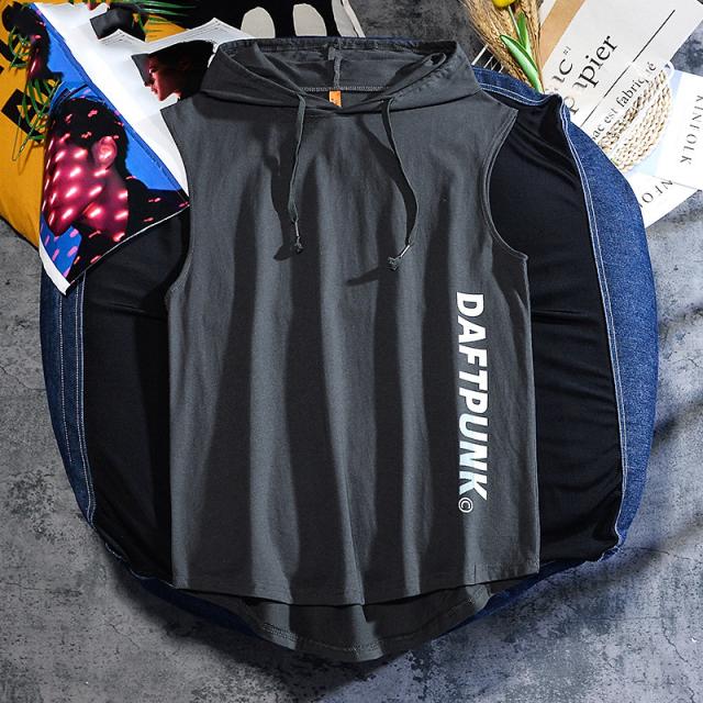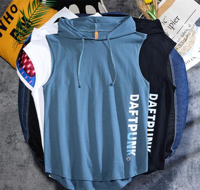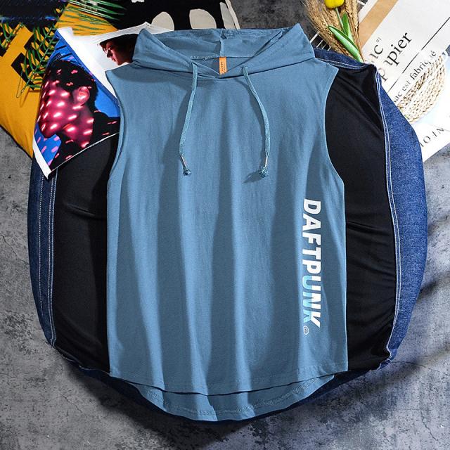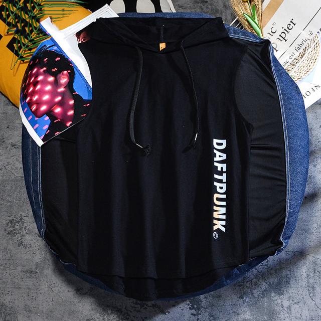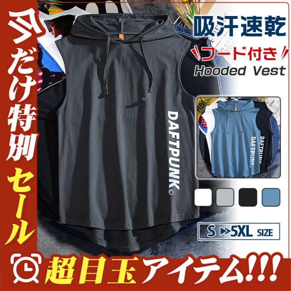 タンクトップ メンズ Tシャツ フード付き 運動 ノースリーブ 夏 トップス 重ね着 薄手 無地 夏パーカー スポーツ お兄系 送料無料 おしゃれ
