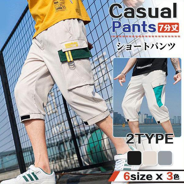 カーゴパンツ メンズ ハーフパンツ イージーパンツ 7分丈 カジュアル おしゃれ スリム ゆったり ボトムス 大きいサイズ 春夏 涼しい 新作