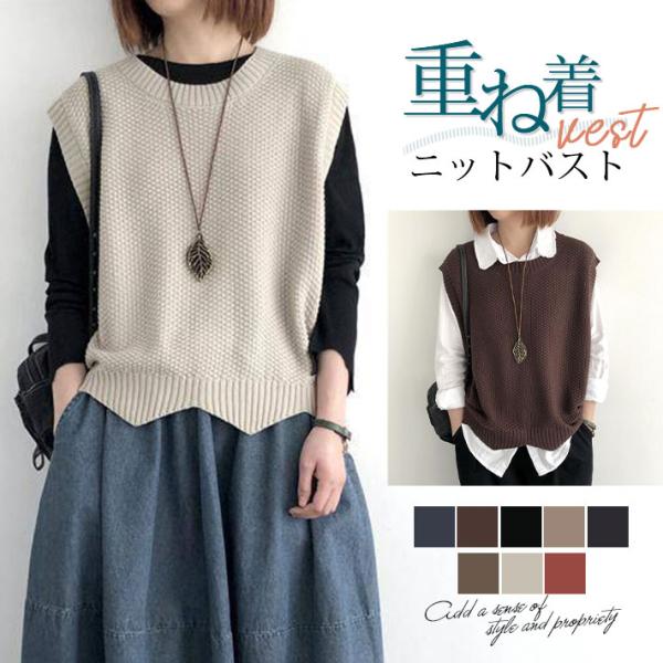 ニットベスト ベスト レディース 春 秋 ニット タンクトップ トップス 着回し 薄手 トップス 体型カバー 重ね着 ノースリーブ 送料無料