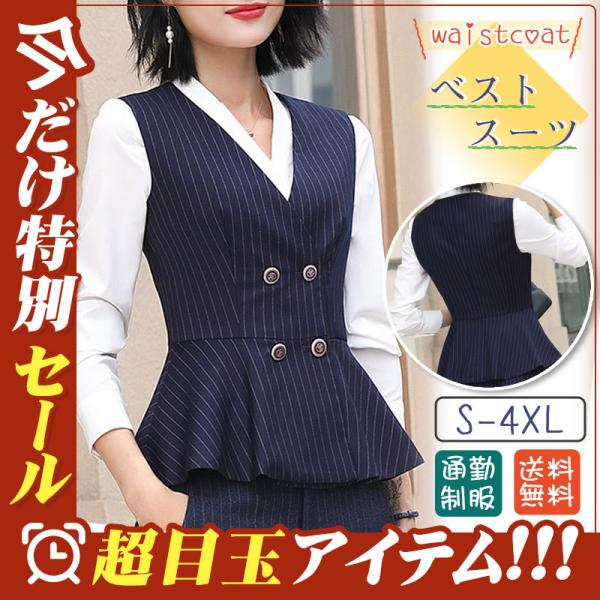 フォーマルベスト レディース ジレベスト ボーダー柄 ベストスーツ 事務服 ジレ オフィス ビジネス 通勤 無地 制服 OL 就活 上品 高級感