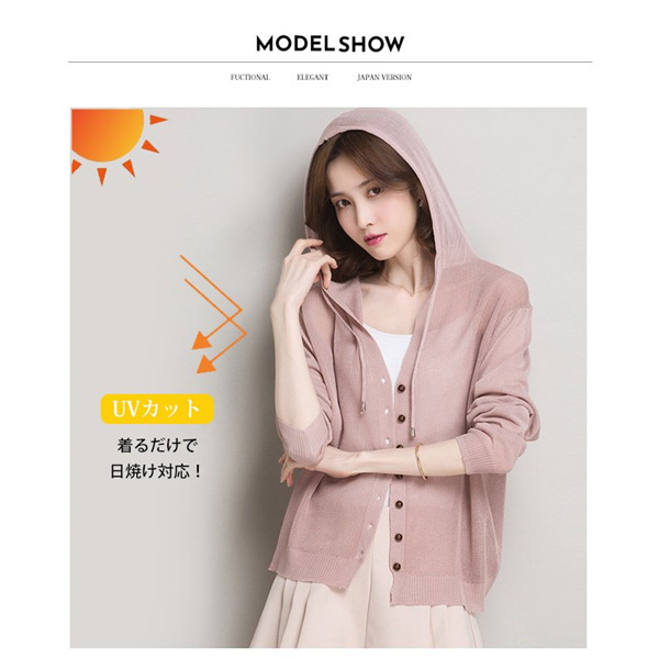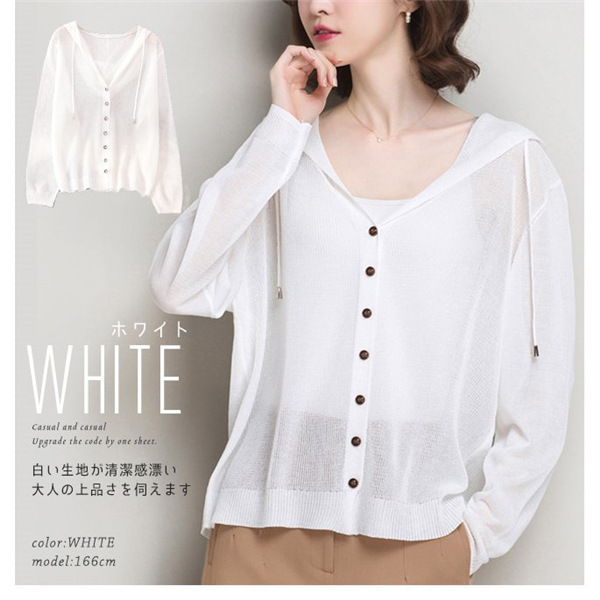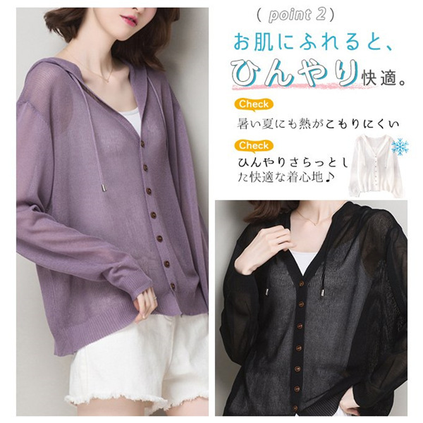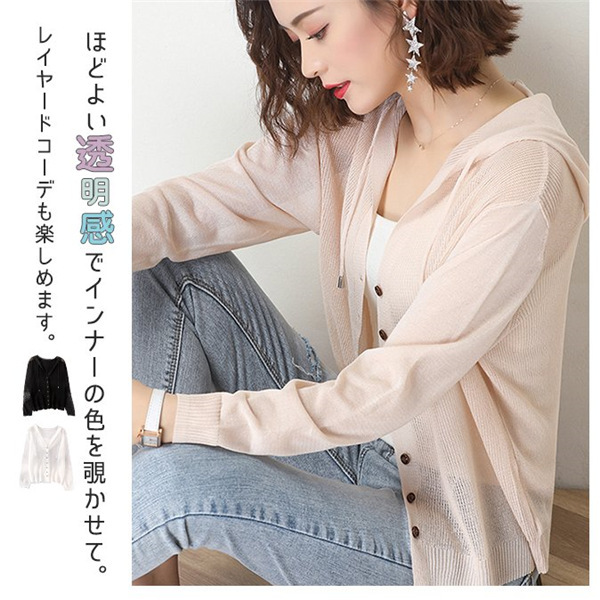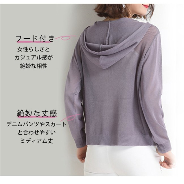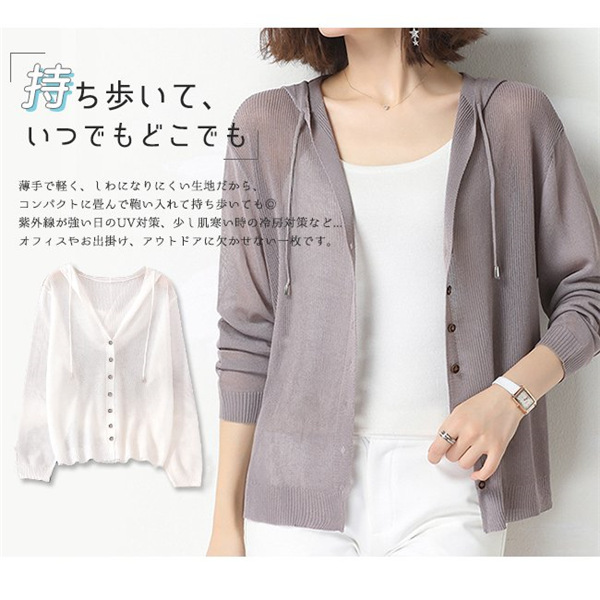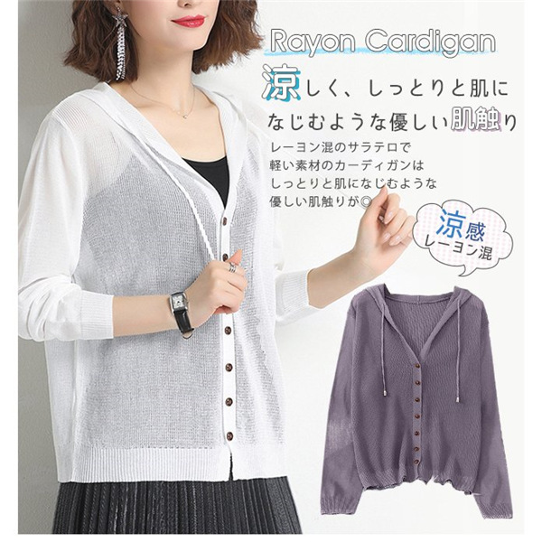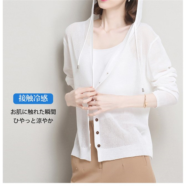 一部当日発送 サマーカーディガン レディース サマーニット UVカット フード付き 涼感 薄手 春夏 トップス 長袖 接触冷感 ひんやり 涼しい 無地 冷房対策