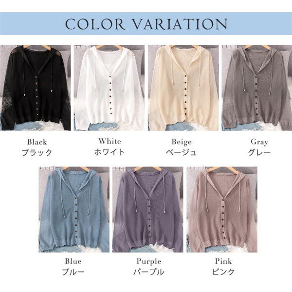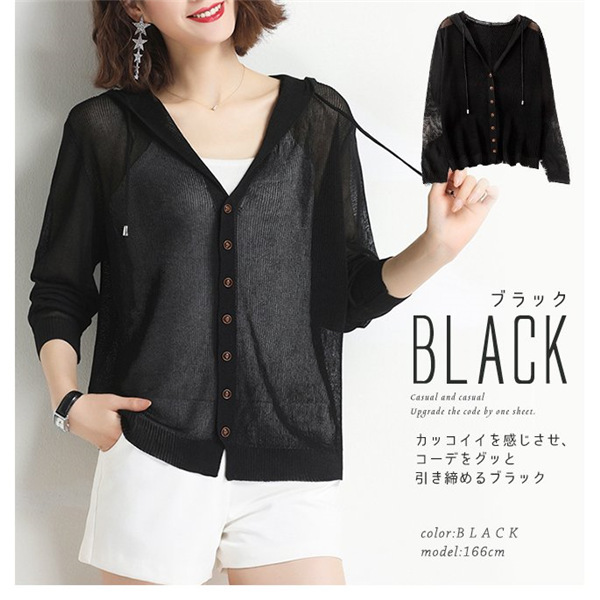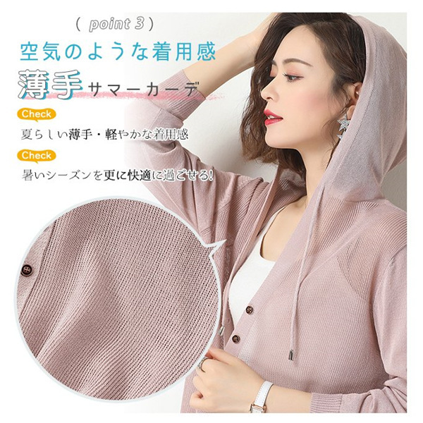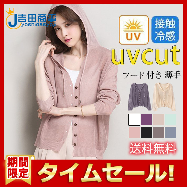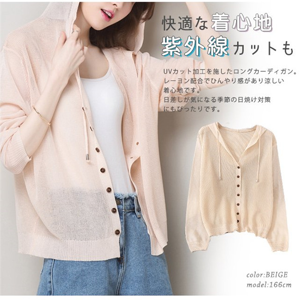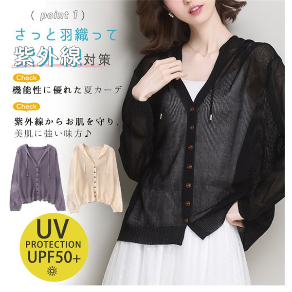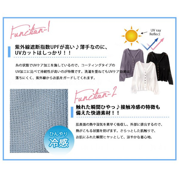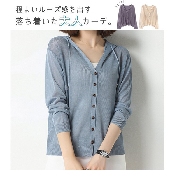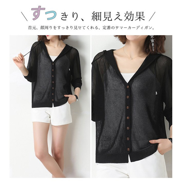 一部当日発送 サマーカーディガン レディース サマーニット UVカット フード付き 涼感 薄手 春夏 トップス 長袖 接触冷感 ひんやり 涼しい 無地 冷房対策