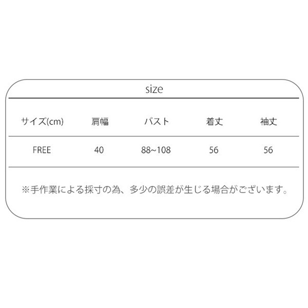 【サイズ】着丈:約57cm バスト:106cm 肩幅:45cm 袖丈:55cm