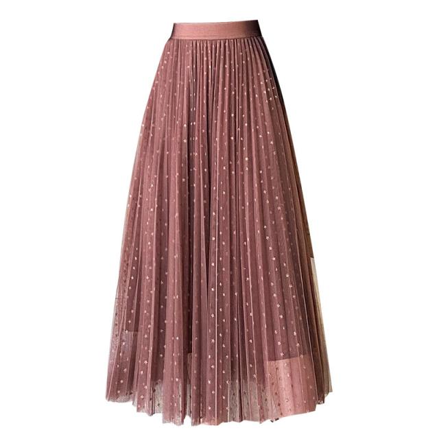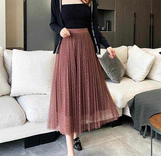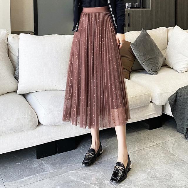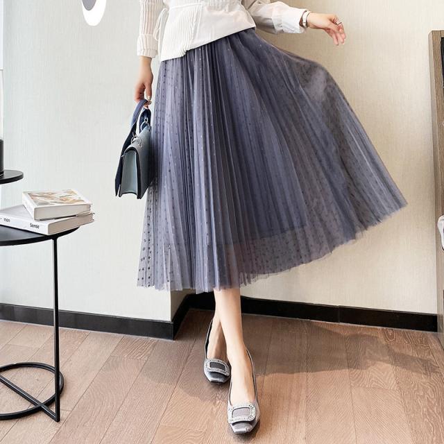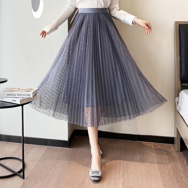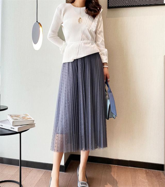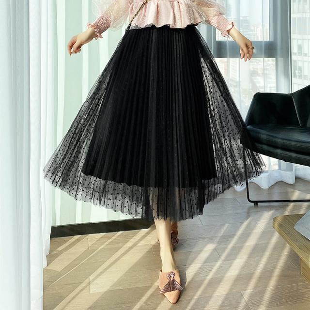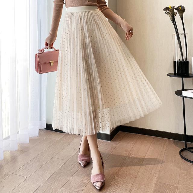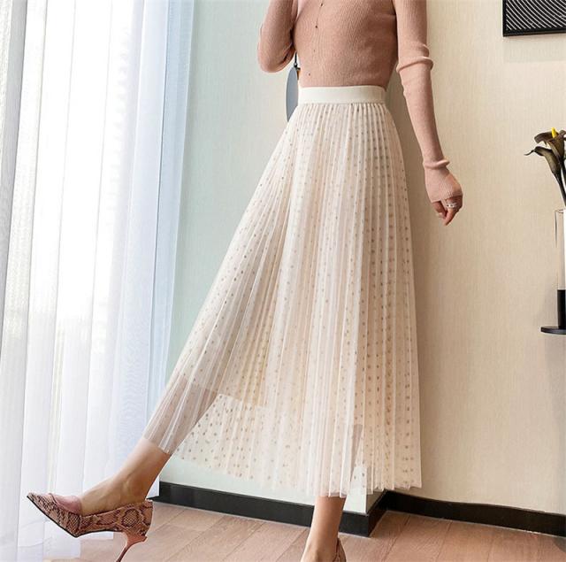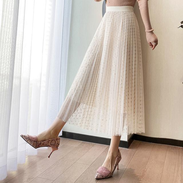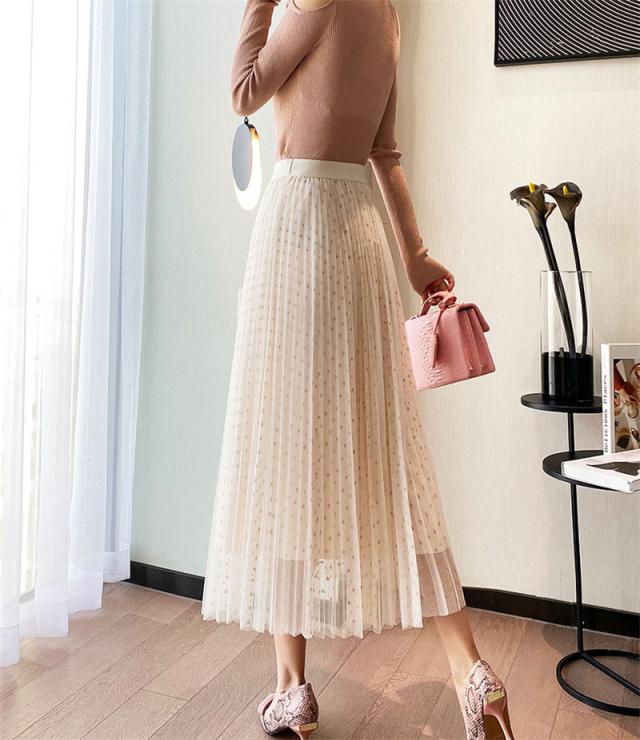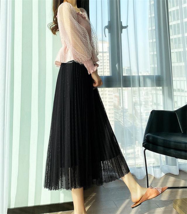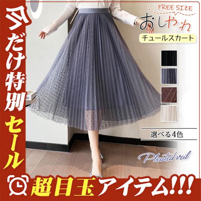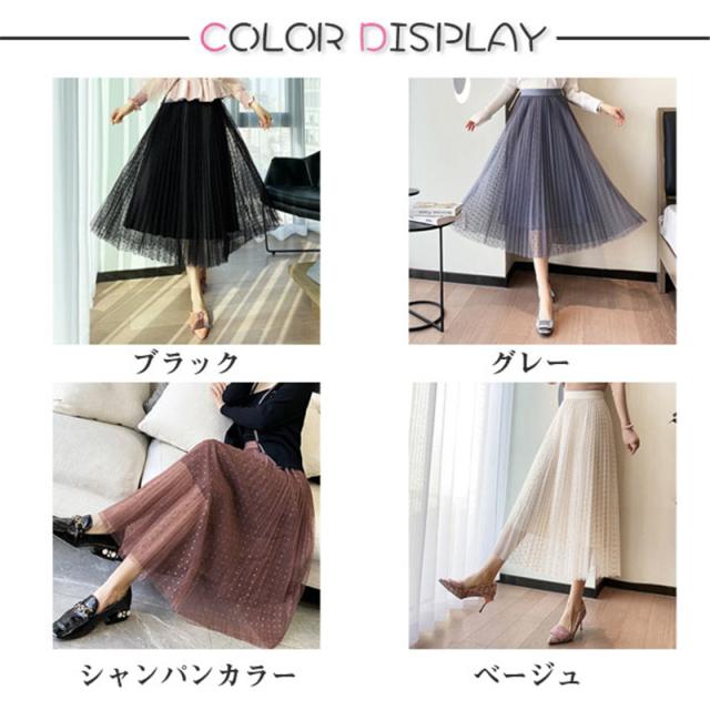 チュールスカート スカート 水玉柄 レディース ウエストゴム 無地 春コーデ Aライン シンプル プリーツスカート 細見え 体型カバー 春夏 新作