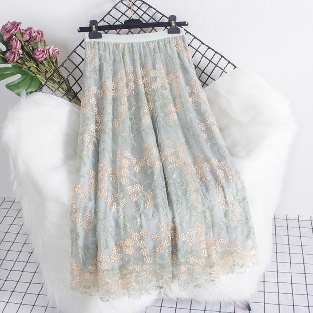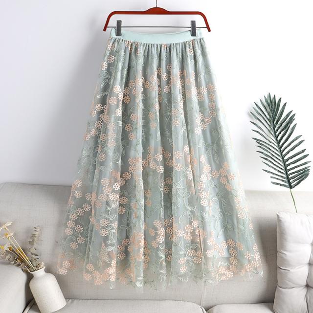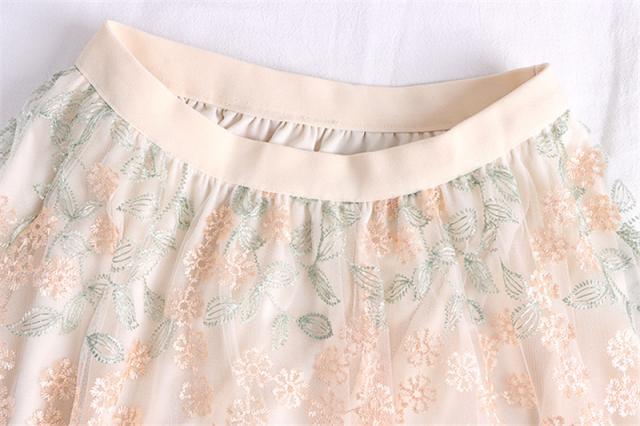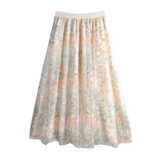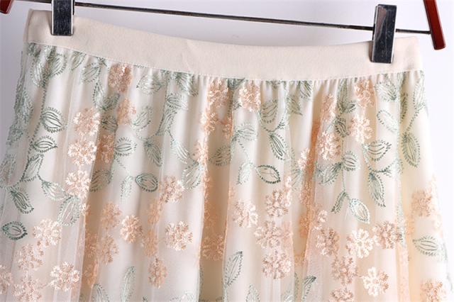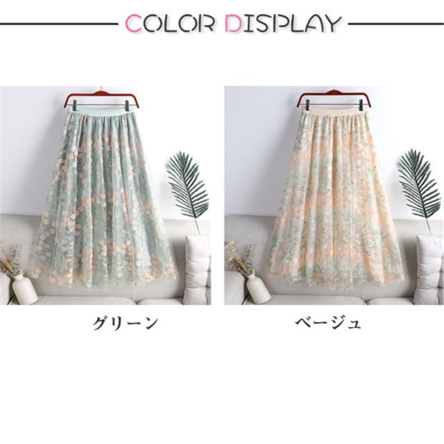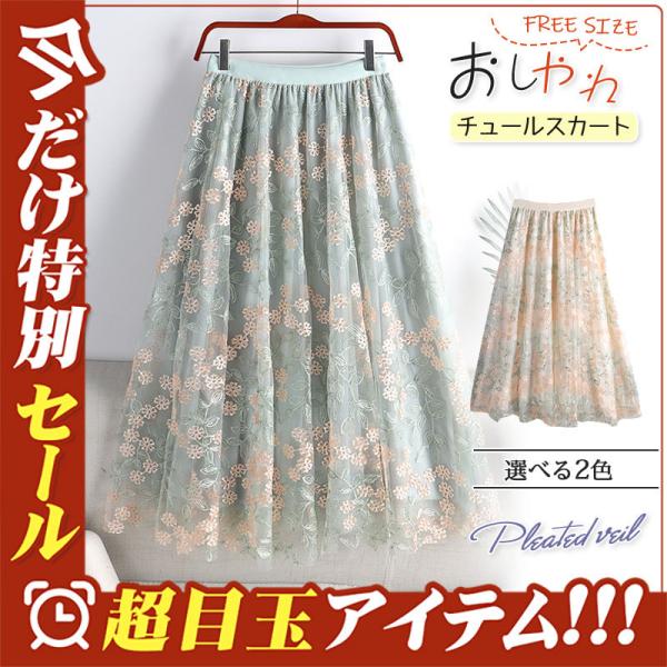 チュールスカート スカート レディース 花柄 刺繍 ウエストゴム 無地 春コーデ Aライン シンプル プリーツスカート 細見え 体型カバー 春夏 新作