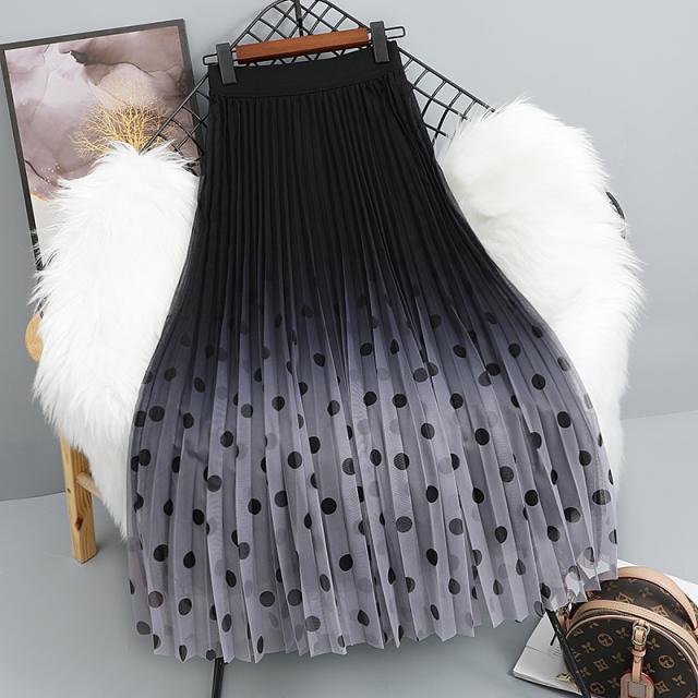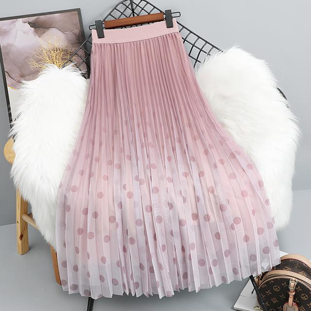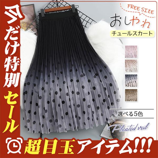 チュールスカート スカート 水玉柄 レディース ウエストゴム 無地 春コーデ Aライン シンプル プリーツスカート 細見え 体型カバー 春夏 新作