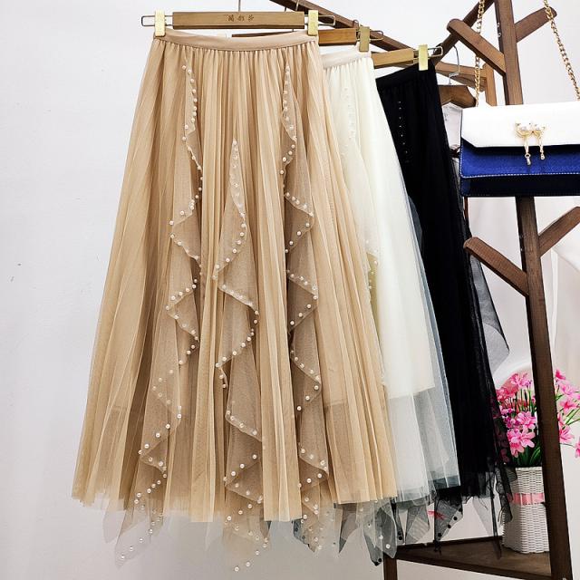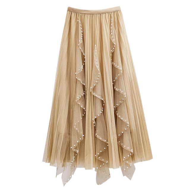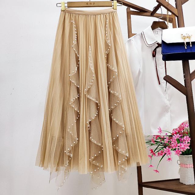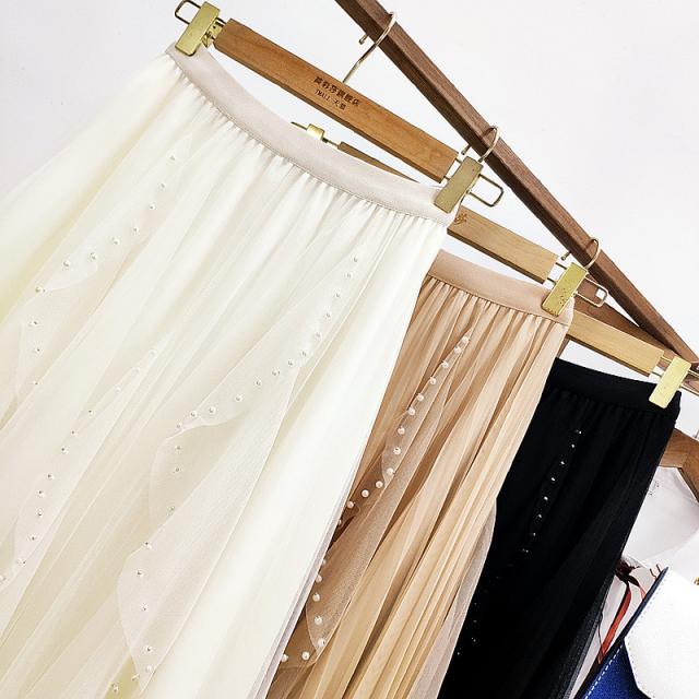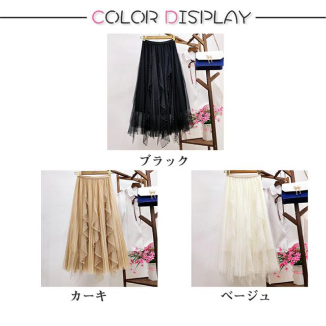 チュールスカート スカート レディース ゆったりウエストゴム 無地 春コーデ Aライン シンプル プリーツスカート 細見え 体型カバー 春夏 新作