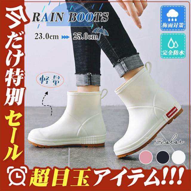 レインブーツ レディース レインシューズ 無地 おしゃれ 梅雨対策 滑らない ブーツ ショート丈 防水 軽量 通勤 通学 台風 雨具 作業用 外出