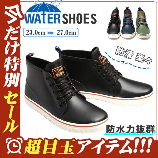 レインシューズ レインブーツ メンズ スニーカー ハイカット 防水 防滑 軽量 厚底 作業靴 防水力抜群 アウトドア おしゃれ 梅雨対策 雨の日
