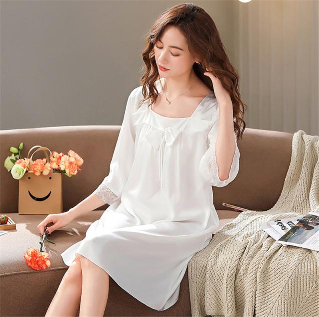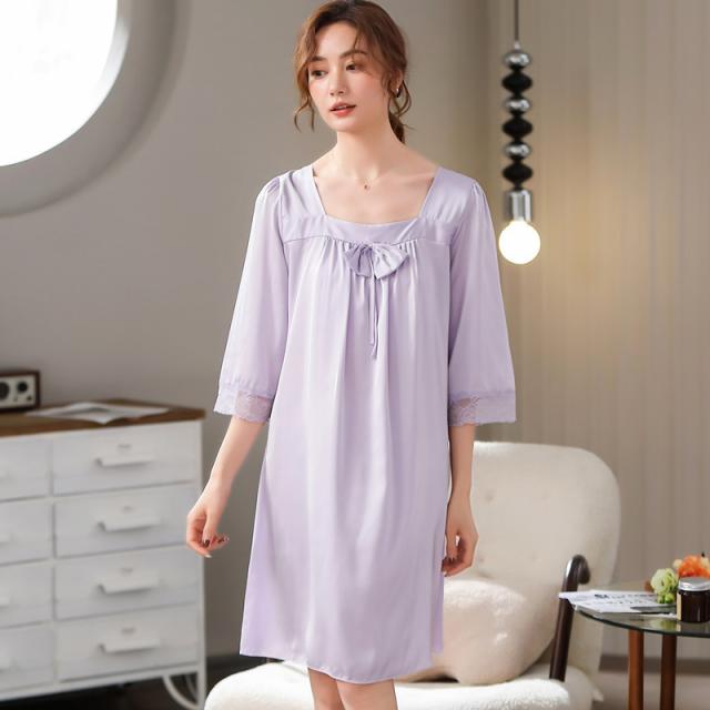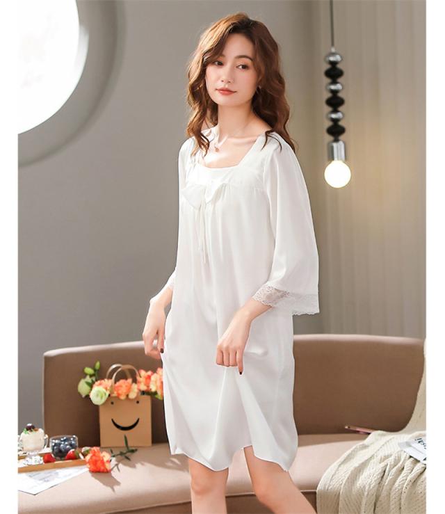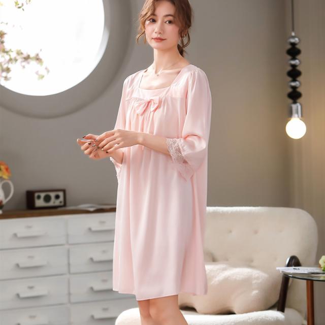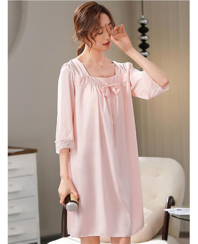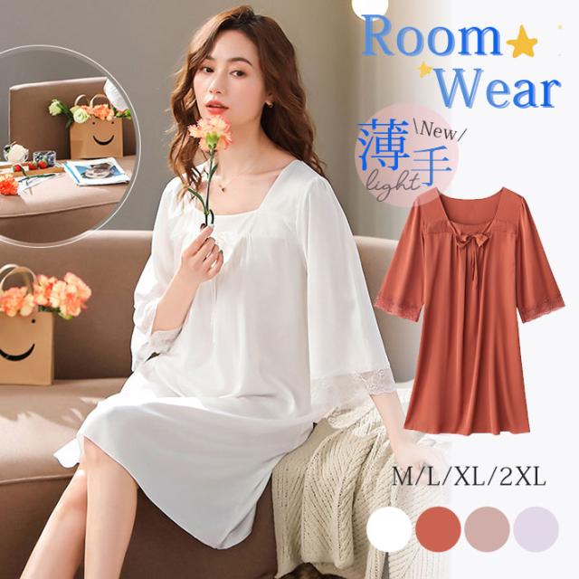 パジャマ レディース ルームウェア 半袖 寝巻き 春夏 リボン ひんやり ネグリジェ ワンピース リラックス 寝間着 部屋着 ゆったり 薄手 おしゃれ