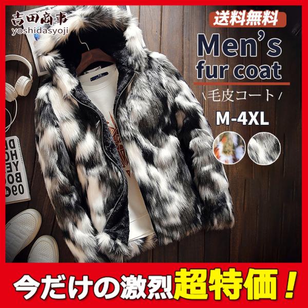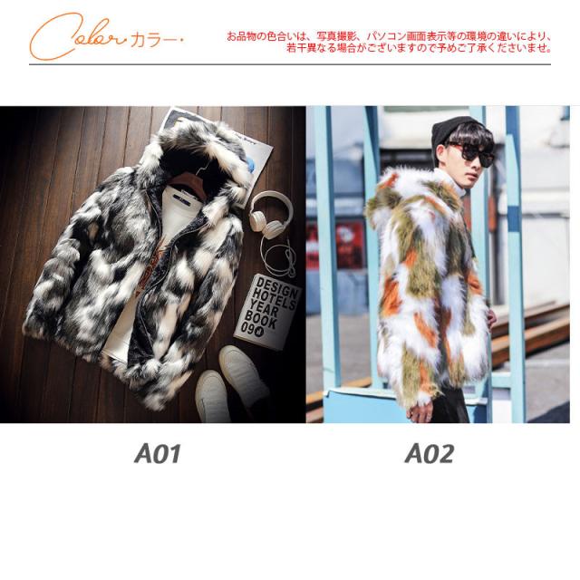 毛皮コート メンズ 防寒 防風 かっこいい ファーコート ファージャケット フード ショート丈 厚手 おしゃれ アウター 暖かい 秋冬