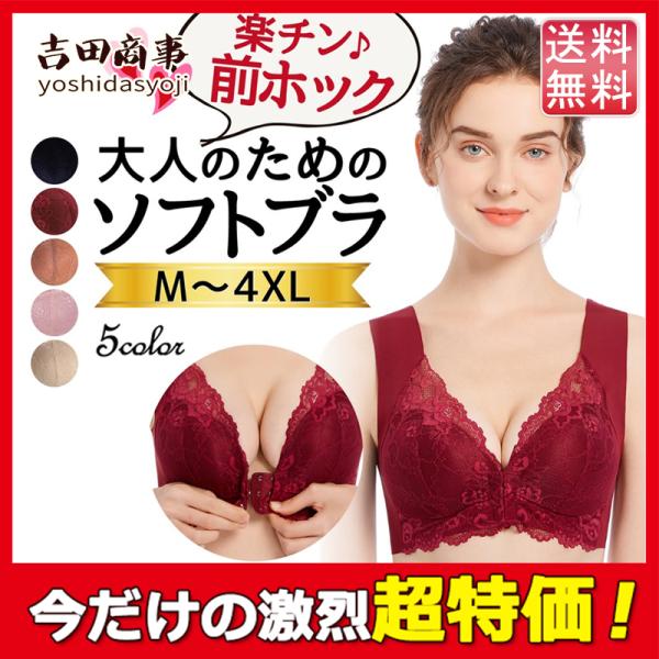 ブラジャー ノンワイヤー ナイトブラ レース 花柄 フロントホック 大きいサイズ 前ホック 夜用ブラ ブラ ふんわり ソフト インナー 30代 下着