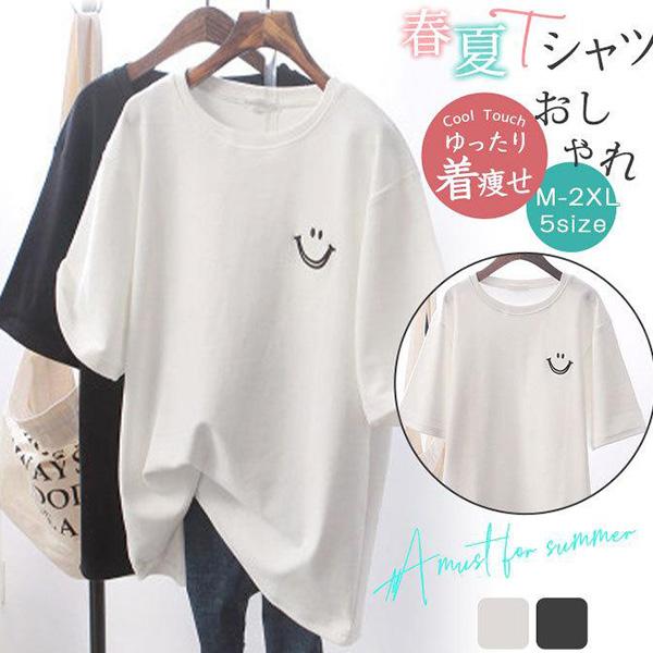 Tシャツ レディース 夏 半袖 トップス ゆるTシャツ 丸首 無地 ロング丈 大きいサイズ カジュアル 上着 可愛い 体型カバー ルームウェア