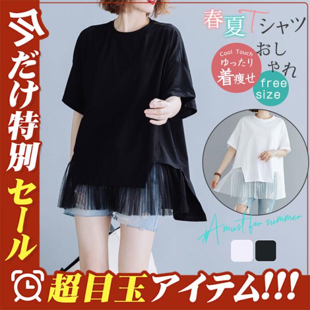 tシャツ レディース 半袖 トップス カジュアル 着重ね 5分袖 無地 着痩せ ゆったり おしゃれ 体型カバー 夏コーデ きれいめ 新作 送料無料