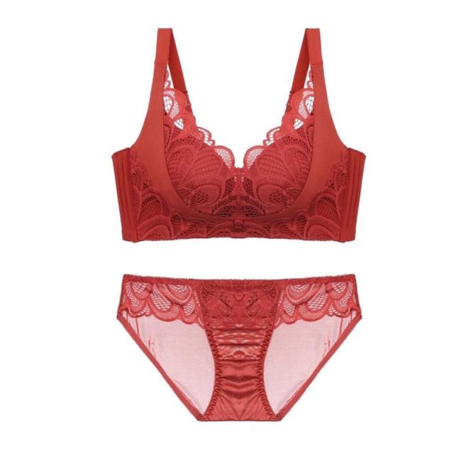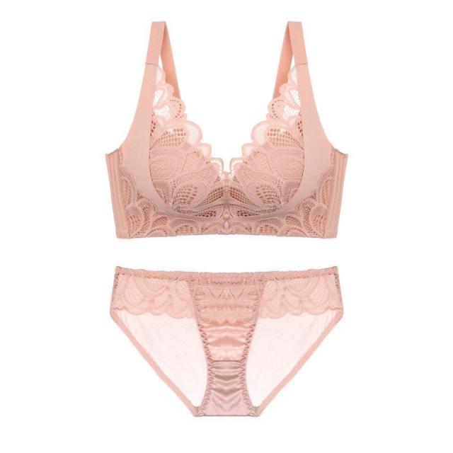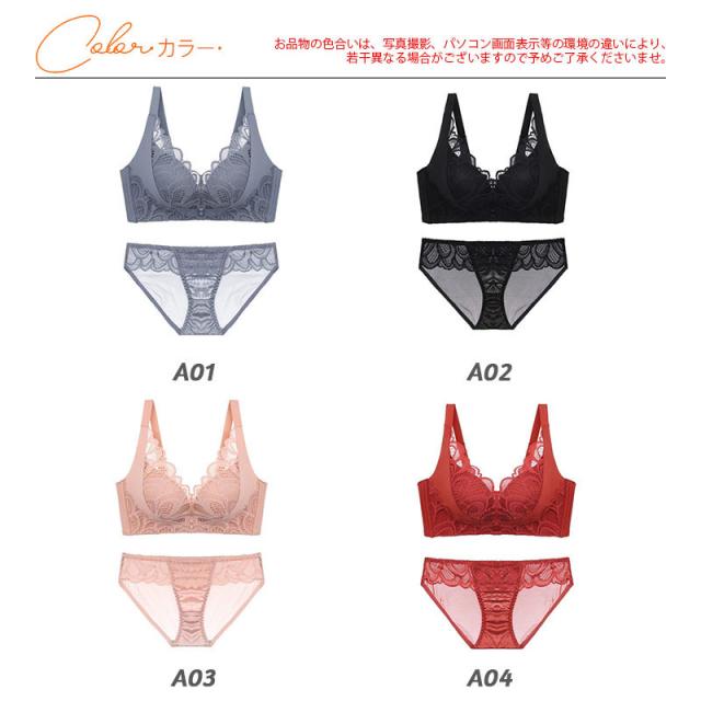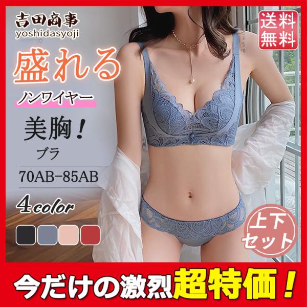 ランジェリーセット ノンワイヤー ブラジャー ショーツセット 寄せブラ レース バスト 盛れる レース ブラショーツセット 大きいサイズ