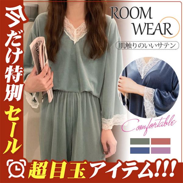 パジャマ モコモコルームウェア レディース 春秋長袖 パジャマ レース Vネック ルームウェア ベルベット 暖かい 上下セット 可愛い 部屋着