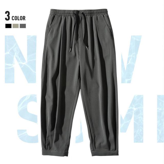 【一部当日発送】サルエルパンツ メンズ ワイドパンツ ひんやり 春夏 ズボン 薄手 ウエストゴ 涼しい 冷感 カジュアル 無地 涼しい チノパン 大きいサイズ