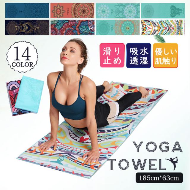 ヨガタオル ヨガラグ ヨガマットタオル 滑らない 折りたたみ ホットヨガ タオル マット 収納袋付き 柄 おしゃれ マイクロファイバー 軽量 新生活
