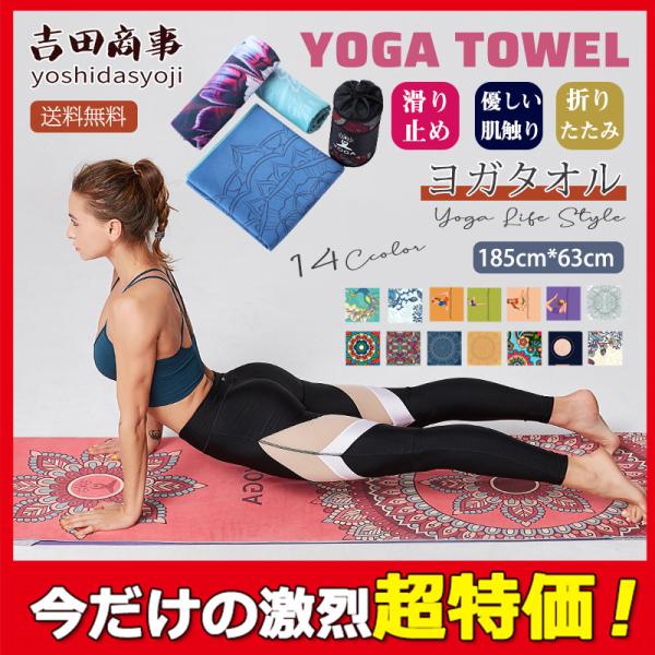 ヨガタオル 滑り止め ヨガラグ 洗える 大判タオル マット 補助道具 軽量 柄物 吸水 ホットヨガ フィットネス 新生活応援 ダイエット