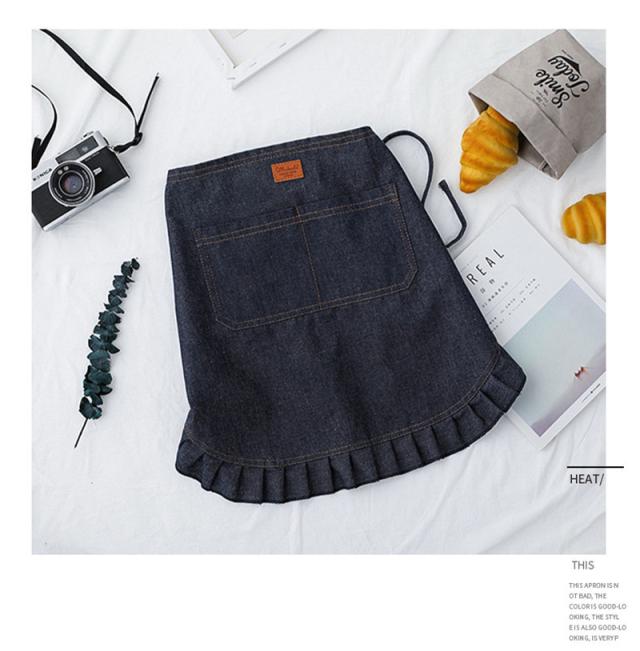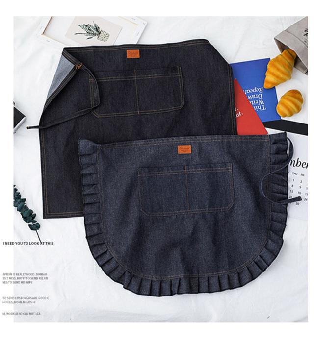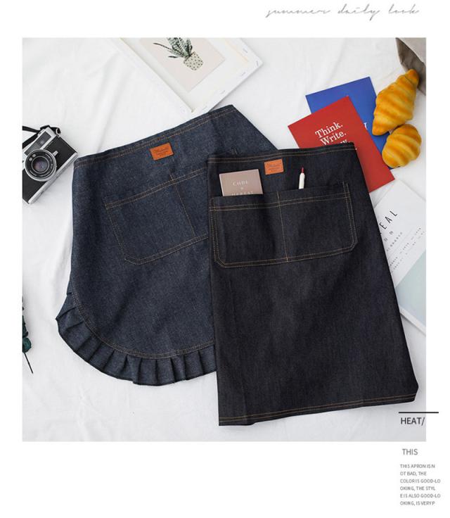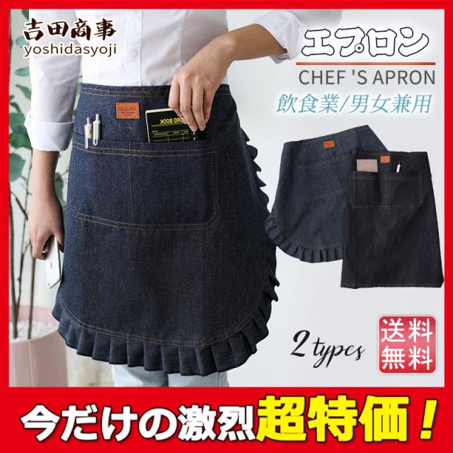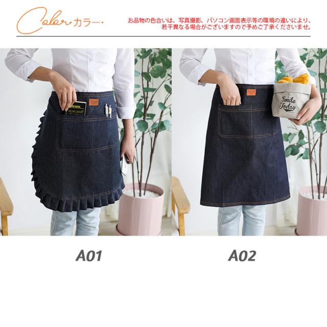 デニムエプロン ショート レディース メンズ フレア 前掛け 男女兼用 飲食業 便利 カフェ 作業服 八百屋 スタッフ用 イベント おしゃれ 衛生