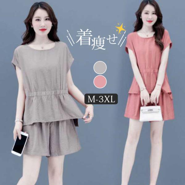 セットアップ レディース 夏服 カジュアル コーデ トップス ブラウス tシャツ ゆったり 体型カバー 短パンツ きれいめ おしゃれ 着痩せ 通勤