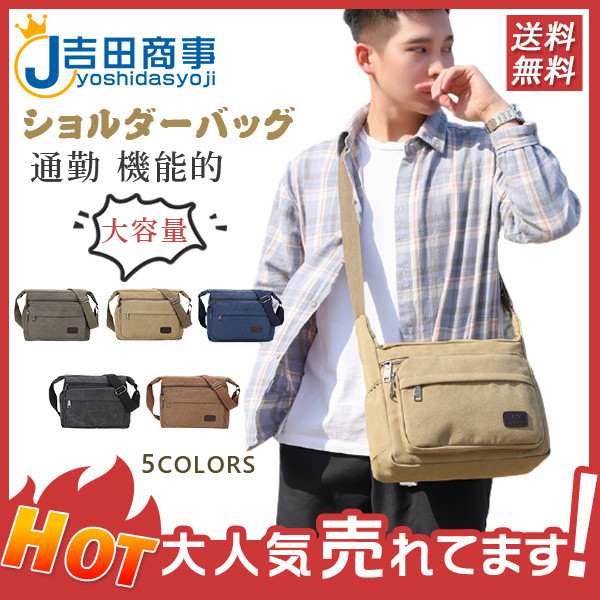 ショルダーバッグ キャンバスバッグ メンズ 斜めがけ 帆布 カジュアル 収納 通学 通勤 機能的 便利 大容量 小物入れ 丈夫 入学式 新作 お出かけ