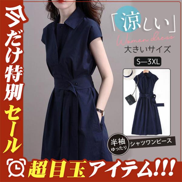 シャツワンピース レディース 半袖ワンピース ノースリーブ ゆったり 大きいサイズ 夏 おしゃれ 通勤 カジュアル お出かけ 涼しい 楽ちん 送料無料
