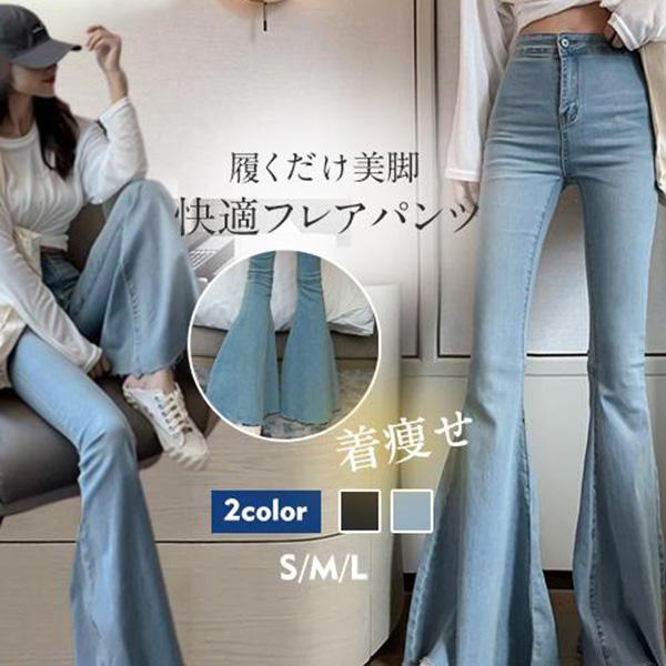 デニムパンツ レディース フレアパンツ デニム ロングパンツ ハイウエスト 美脚 脚長 韓国 スリム デイリーコーデ カジュアル ジーンズ
