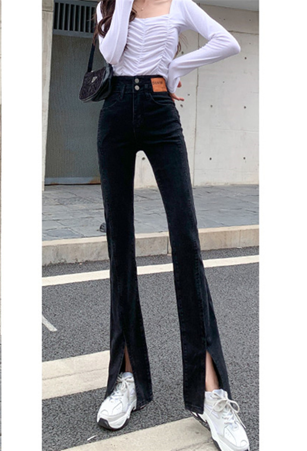 デニムパンツ レディース フレアパンツ デニム スリット ロングパンツ ハイウエスト 美脚 脚長 韓国 スリム デイリーコーデ カジュアル ジーンズ