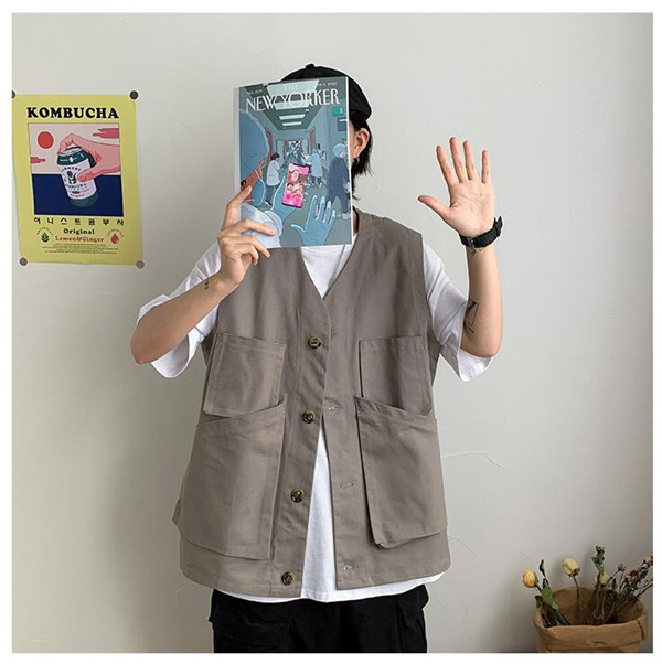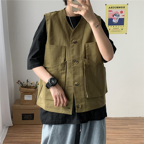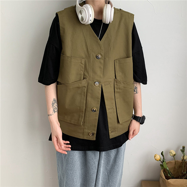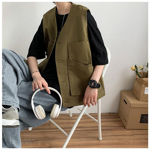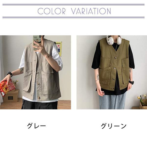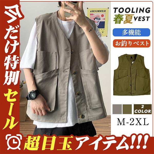ベスト 前開き ジレベスト ワーク風 メンズ チョッキ ワークベスト ポケットデザイン お洒落 アウター ノースリーブ ゆったり トップス 夏 春秋