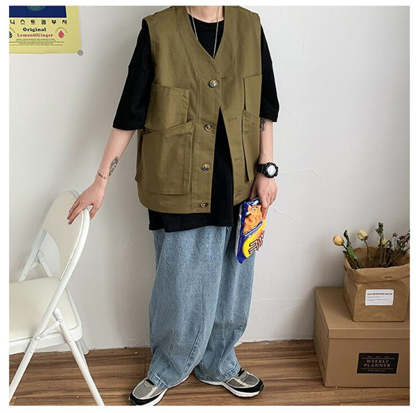 ゆったりカジュアルメンズ前あきベストが新入荷