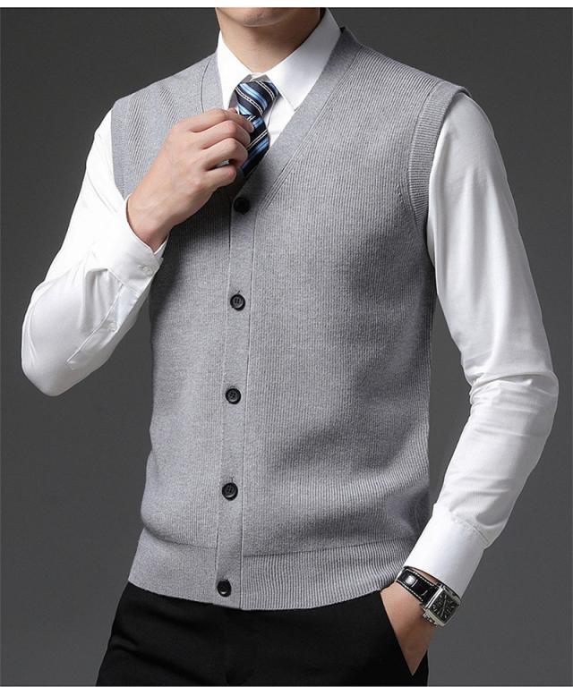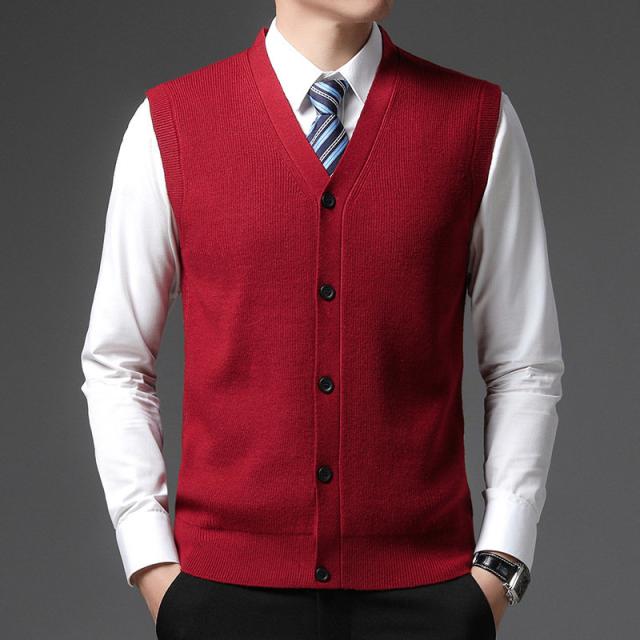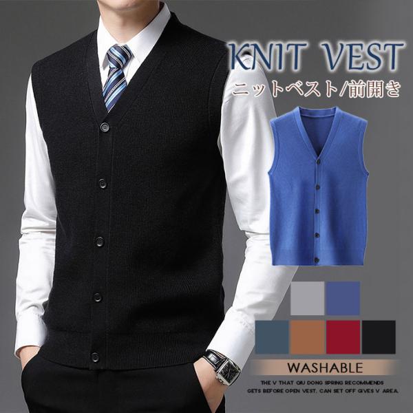 ニットベスト チョッキ ウール カーディガン メンズ アウター トップス ベスト 前開き 秋冬 カジュアル Vネック 春物 30代 40代 送料無料