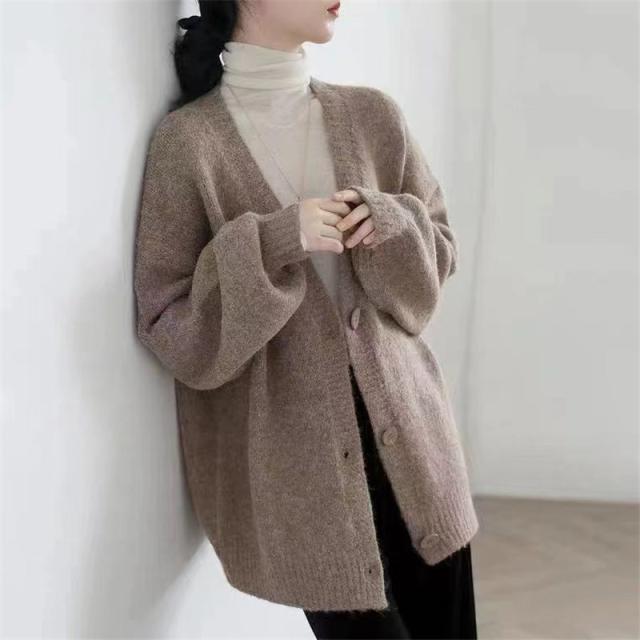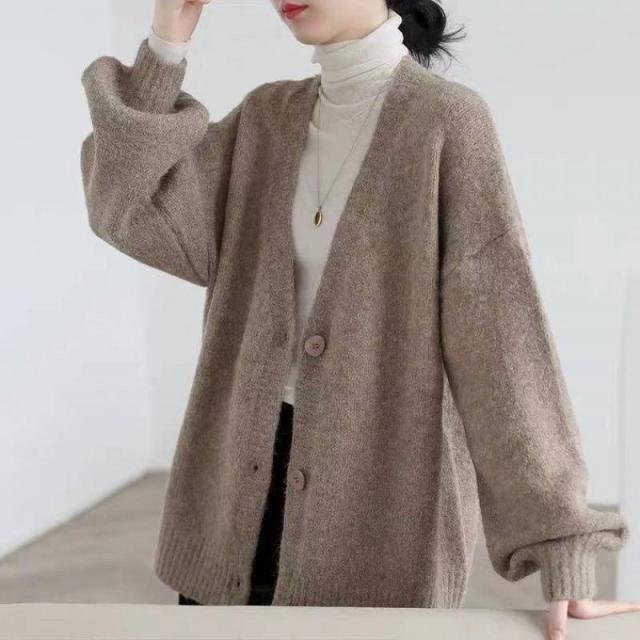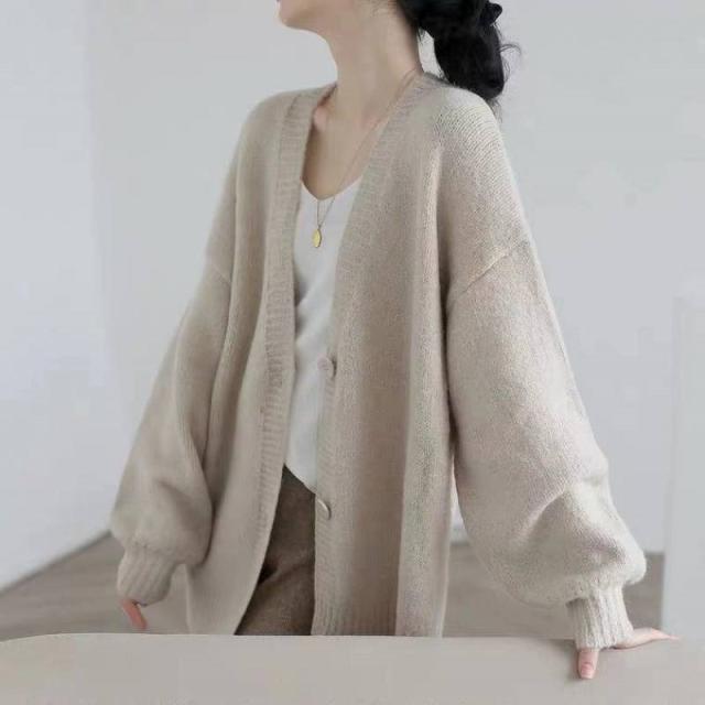 カーディガン ニット レディース 春 秋冬 オフィス ニットカーディガン 厚手 長袖 vネック 前開き 大きいサイズ オーバーサイズ ナチュラル