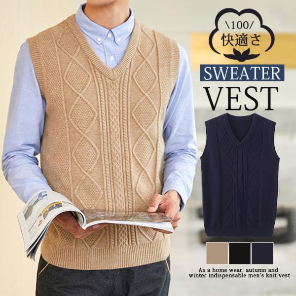 ニットベスト ノースリーブ ゴルフ ビジネス ニットセーター ベスト メンズ Vネック セーター 無地 大人 カジュアル 紳士 部屋着 送料無料